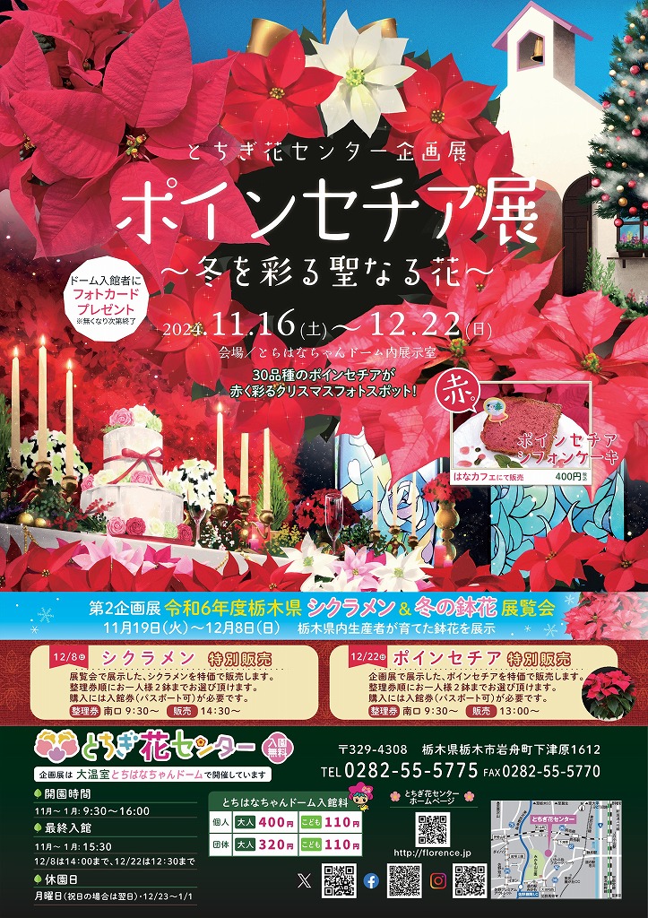 | 企画展 | 2024年11月19日 | 第2企画展「令和6年度栃木県シクラメンと冬の鉢花展覧会」11/19~12/8 |