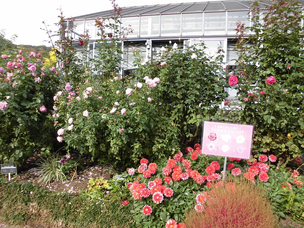 殿堂入りのバラ園西側の秋の花