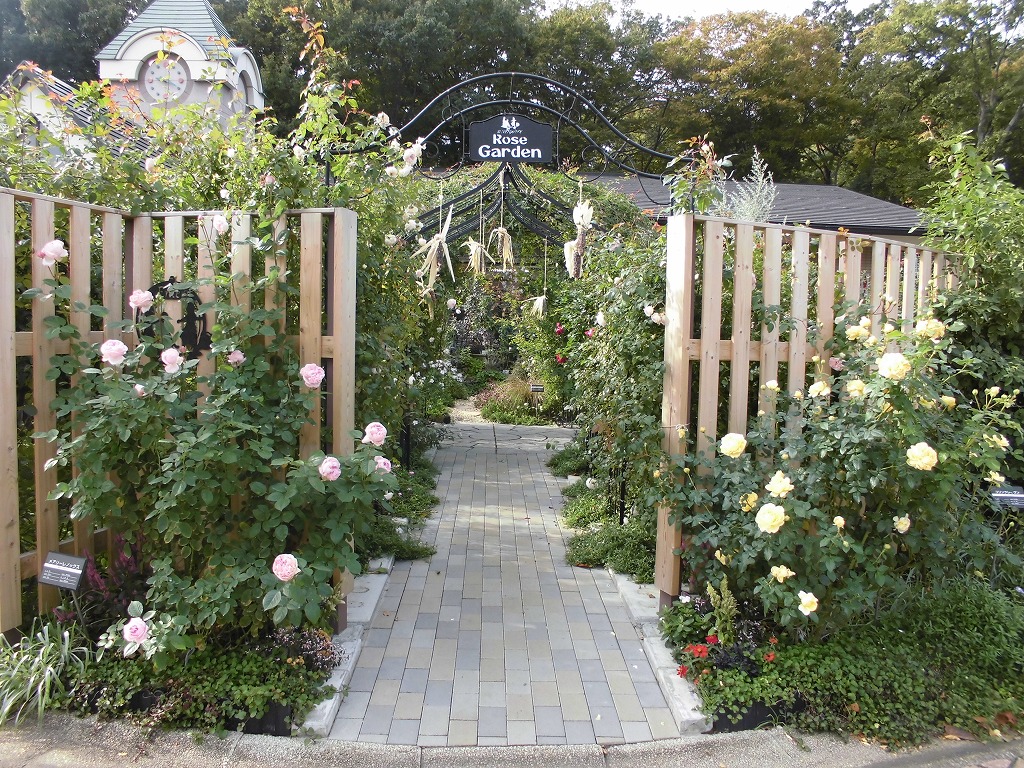 殿堂入りのバラ園の秋の花