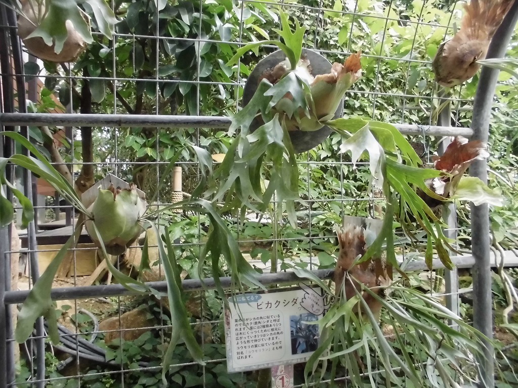 葉の形がシカの角に似ているのでビカク(鹿角)シダと呼ばれます。葉には2種類あり1つは木にくっつくために根元に広がっていき、1つはシカの角のような形で伸びていきます。コウモリの翼に似ているので別名「コウモリラン」とも呼ばれます。