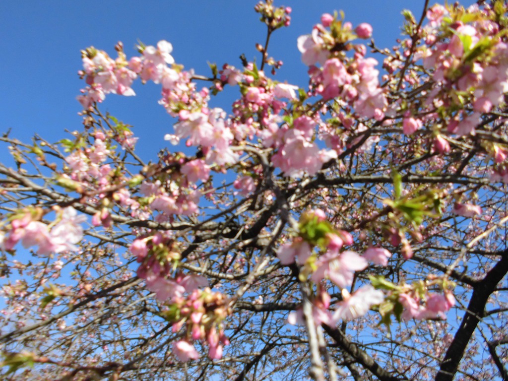 花センター駐車場の河津桜が咲いています。