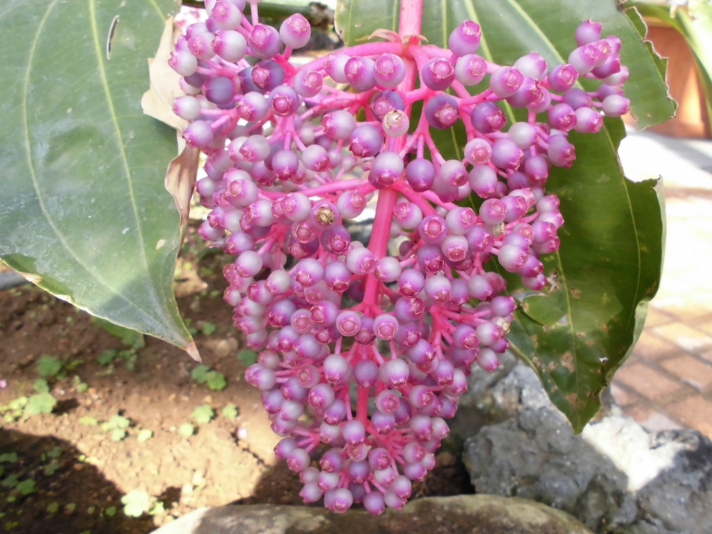 果実はピンクから紫、ブルーへと美しく色を変えます。